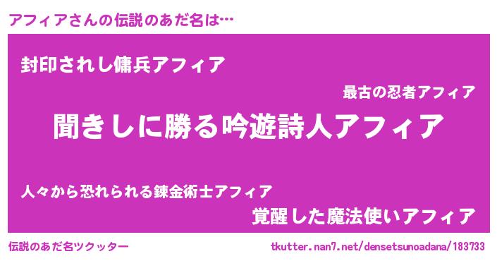| ヒーロー風カッコイイあだ名 | 『ネオアフィア』『スーパーアフィア』 |