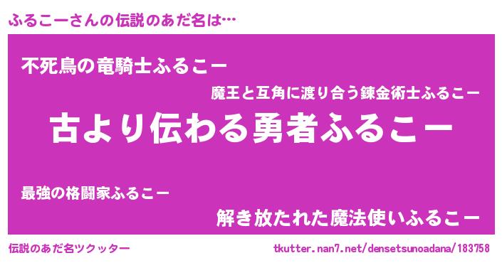 | ヘコむあだ名 | 『ふるこー(遠い目)』『ふるにー』 |