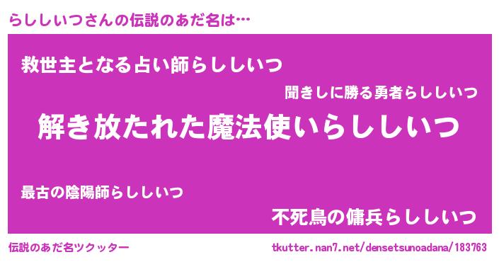 | 女子向けラノベタイトル風あだ名 | 『らししいつアンティーク』 |
