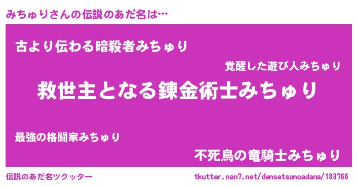 | ヒーロー風カッコイイあだ名 | 『天空の使者みちゅり』『仮面ミチダー』 |
