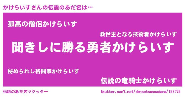 | ファンタジー風あだ名 | 『カケディッシュ』『ゼカケトゥ』 |