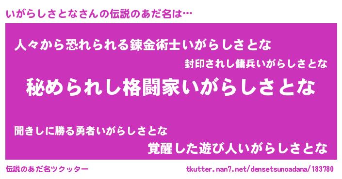 | 女子向けラノベタイトル風あだ名 | 『いがらしさとなの雑貨屋さん』 |