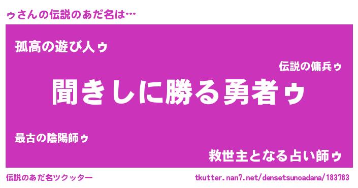 | 男性向けラノベタイトル風あだ名 | 『魔法科高校のゥ』『はたらくゥさま!』 |
