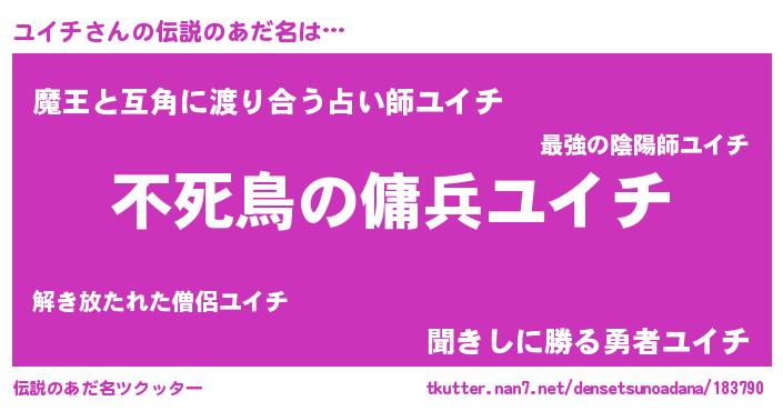 | ヒーロー風カッコイイあだ名 | 『スーパーユイチ』『友情の使者ユイチ』 |