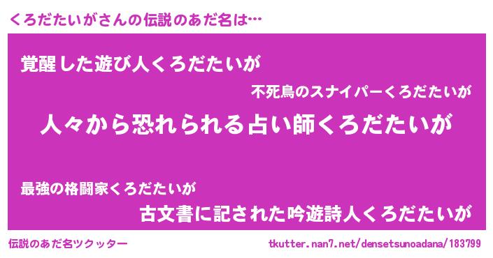 | 欧米人風あだ名 | 『アンジェラ・くろだたいが』 |