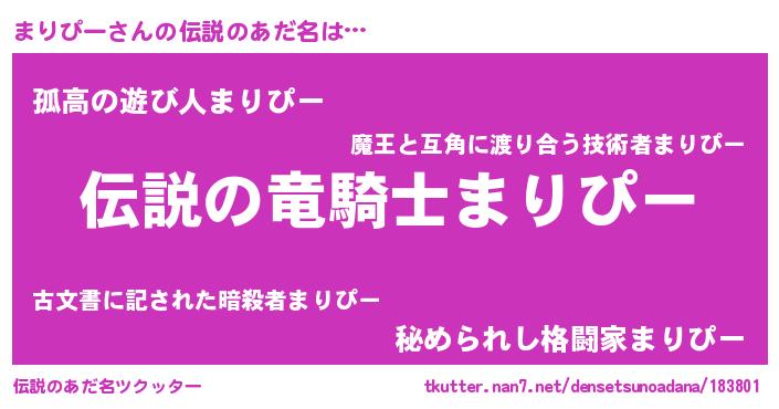 | ヒーロー風カッコイイあだ名 | 『スーパーマリピー』『仮面マリダー』 |