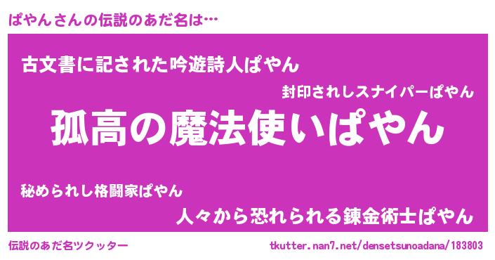 | 意味不明あだ名 | 『自称ぱやん』『とにかく怪しいぱやん』 |