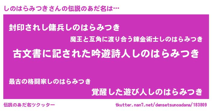 | ヘコむあだ名 | 『しのはらみつき(小並感)』『しのふぇ~』 |