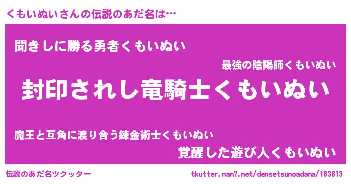 | 胡散臭い通販商品みたいなあだ名 | 『億万長者になれるブレスレット…その名も「くもいぬい」』 |