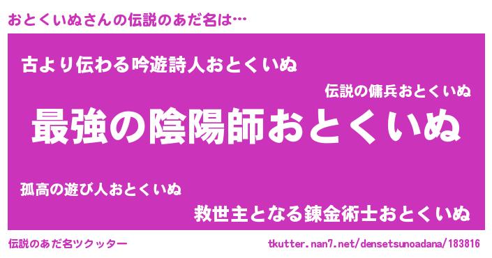 | 意味不明あだ名 | 『おとくいぬフォーエバー』 |