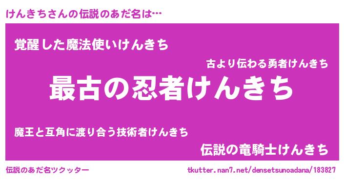 | ポケモン風あだ名 | 『ケンキダネ』『ケンゴンZ』 |
