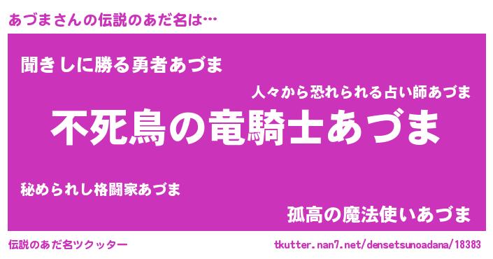 | ヒーロー風カッコイイあだ名 | 『仮面アヅダー』『スーパーアヅマ』 |