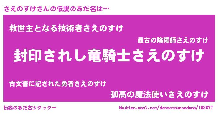 | 意味不明あだ名 | 『住所不定無職さえのすけ(4歳)』 |