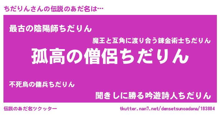 | 意味不明あだ名 | 『とにかく怪しいちだりん』 |