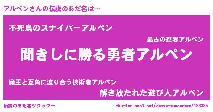 | ヒーロー風カッコイイあだ名 | 『ネオアルペン』『スーパーアルペン』 |