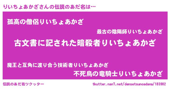 | ヒーロー風カッコイイあだ名 | 『ネオリイチョアカザ』『銀牙騎士リイ』 |