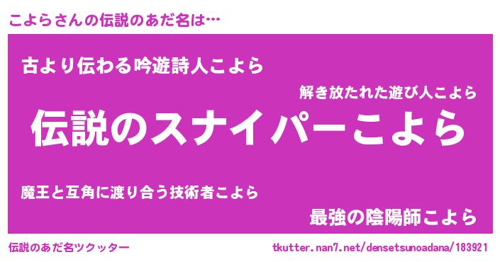 | 胡散臭い通販商品みたいなあだ名 | 『必ず成功する霊験あらたかなお札…その名も「こよら」』 |