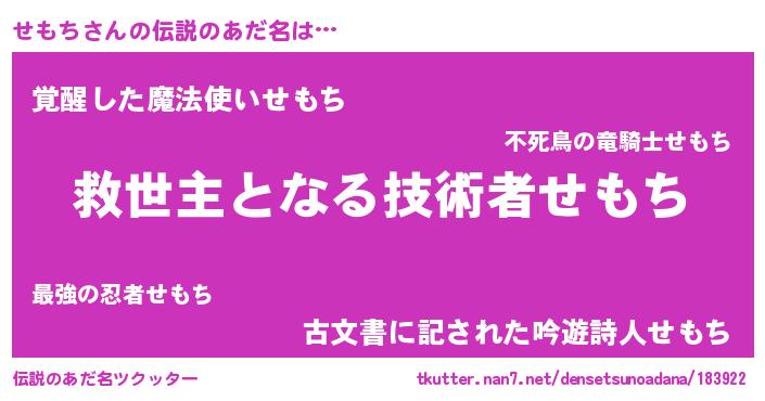 | ヒーロー風カッコイイあだ名 | 『天空の使者せもち』『天弓騎士セモ』 |