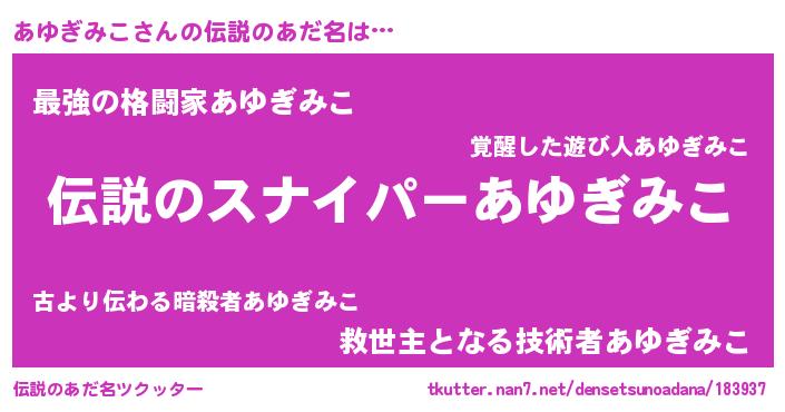 | 男性向けラノベタイトル風あだ名 | 『あゆぎみこの憂鬱』 |