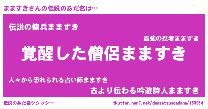 | 男性向けラノベタイトル風あだ名 | 『まますきに滅ぼされるだけの簡単なお仕事です』 |