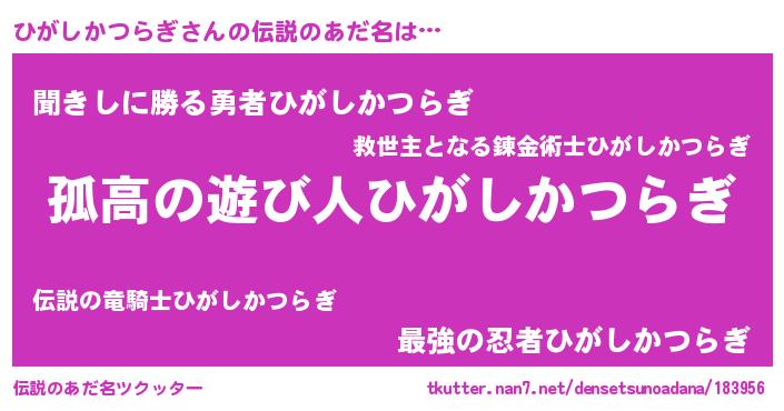 | ヘコむあだ名 | 『ひがっちょ』『ひがしかつらぎ(遠い目)』 |