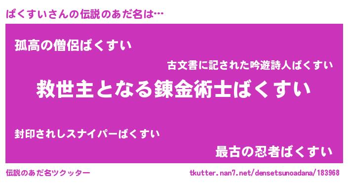 | ポケモン風あだ名 | 『バックウザ』『ヒバクスイ』 |