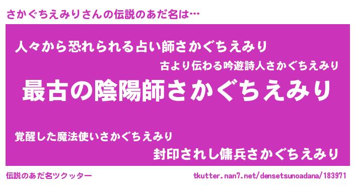 | 男性向けラノベタイトル風あだ名 | 『やはりさかぐちえみりの青春ラブコメはまちがっている 』 |