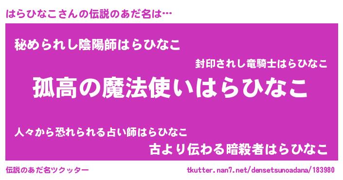 | 意味不明あだ名 | 『とにかく怪しいはらひなこ』 |