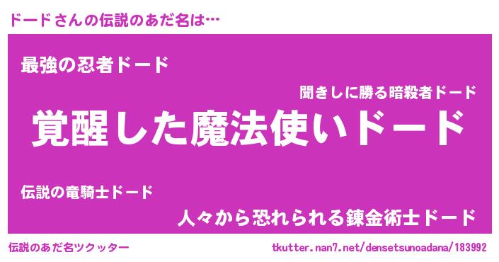 | 意味不明あだ名 | 『住所不定無職ドード(4歳)』 |