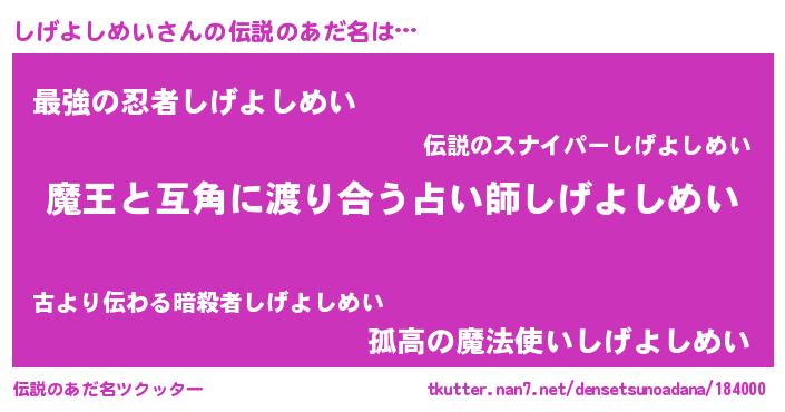 | ヒーロー風カッコイイあだ名 | 『友情の使者しげよしめい』 |