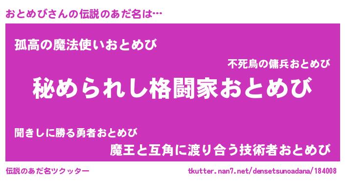 | 男性向けラノベタイトル風あだ名 | 『魔弾の王とおとめび』 |