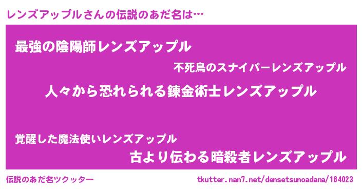 | ヒーロー風カッコイイあだ名 | 『正義の使者レンズアップル』 |