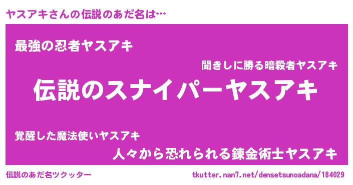 | 胡散臭い通販商品みたいなあだ名 | 『必ず成功する霊験あらたかなお札…その名も「ヤスアキ」』 |