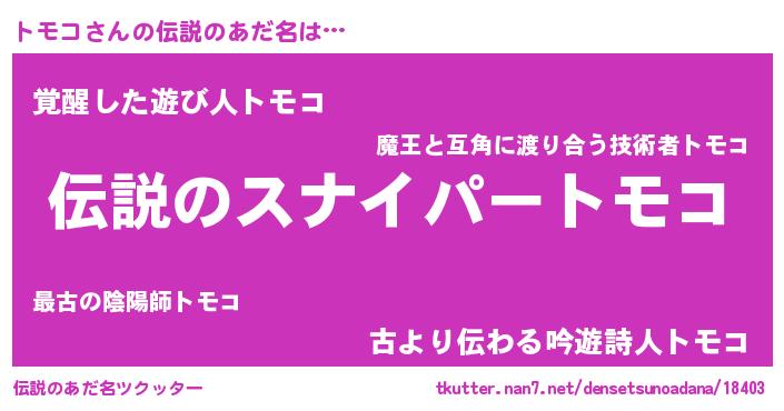 | ヒーロー風カッコイイあだ名 | 『ウルトラ戦士トモコ』『スーパートモコ』 |