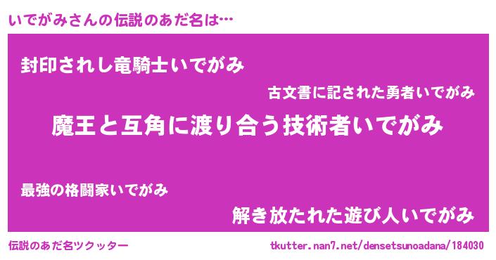 | ヒーロー風カッコイイあだ名 | 『仮面イデダー』『究極戦士イデガミ』 |