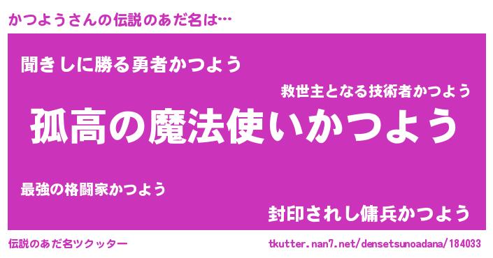 | 胡散臭い通販商品みたいなあだ名 | 『信頼と実績のサプリメント…その名も「かつよう」』 |