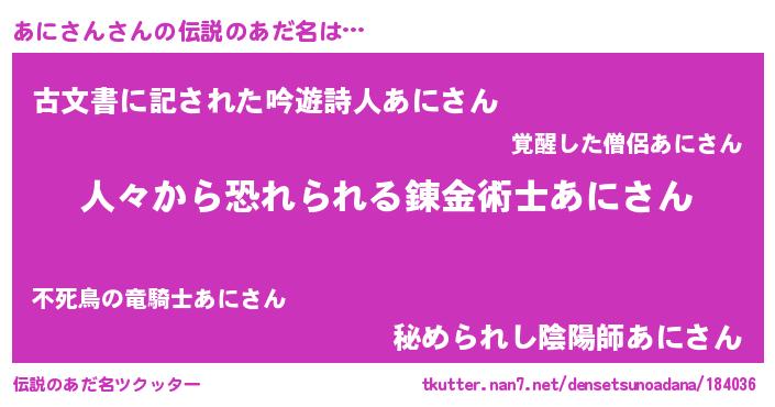 | 意味不明あだ名 | 『住所不定無職あにさん(81歳)』 |