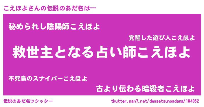| ヒーロー風カッコイイあだ名 | 『天空の使者こえほよ』『仮面コエダー』 |