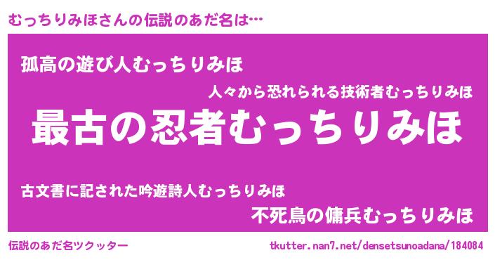 | 意味不明あだ名 | 『住所不定無職むっちりみほ(62歳)』 |