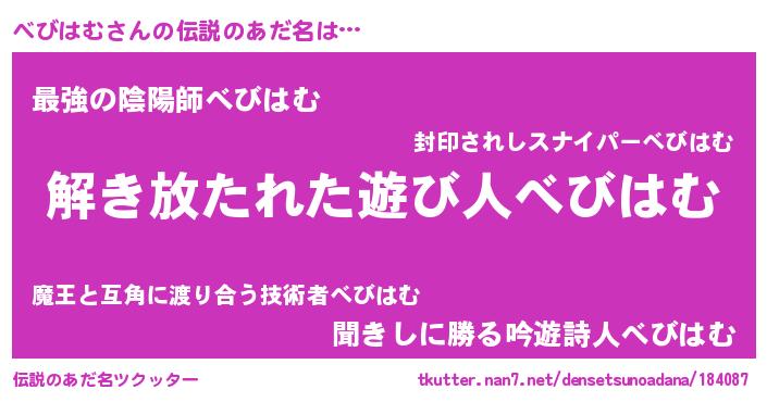 | 意味不明あだ名 | 『住所不定無職べびはむ(86歳)』 |