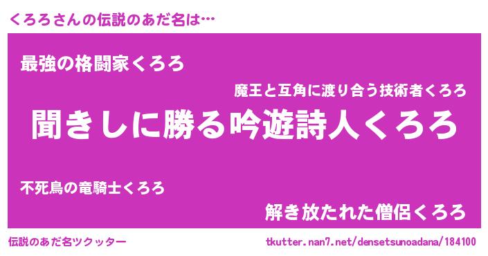 | 意味不明あだ名 | 『住所不定無職くろろ(9歳)』『自称くろろ』 |
