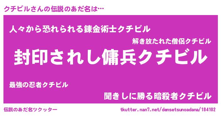 | ヒーロー風カッコイイあだ名 | 『究極戦士クチビル』『スーパークチビル』 |