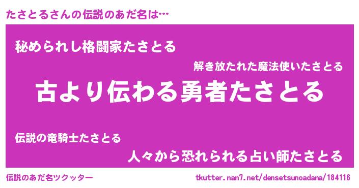 | 意味不明あだ名 | 『住所不定無職たさとる(85歳)』 |