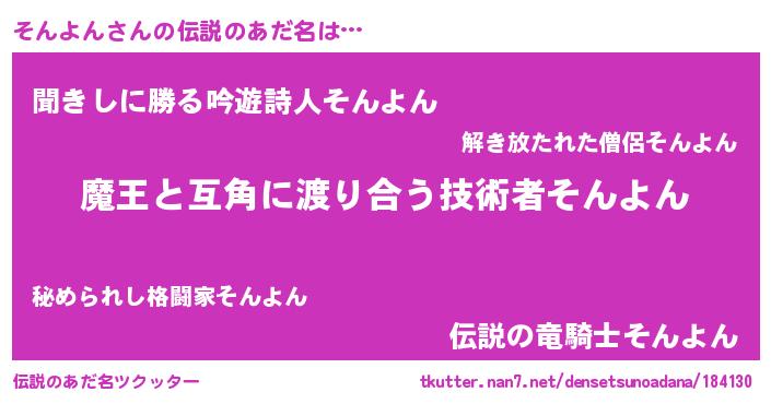 | ヘコむあだ名 | 『そんよん(小並感)』『そんもー』 |