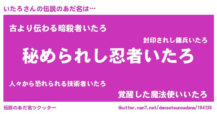 | ヒーロー風カッコイイあだ名 | 『超時空戦士イタロ』『仮面イタダー』 |