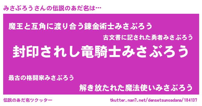 | 意味不明あだ名 | 『ペロリンみさぶろう』『自称みさぶろう』 |