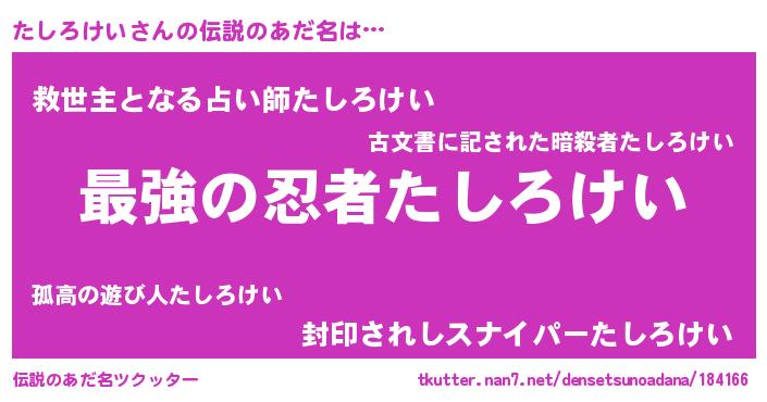| 意味不明あだ名 | 『たしろけいフォーエバー』 |