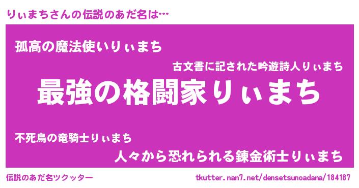 | ヒーロー風カッコイイあだ名 | 『究極戦士リィマチ』『天弓騎士リィ』 |
