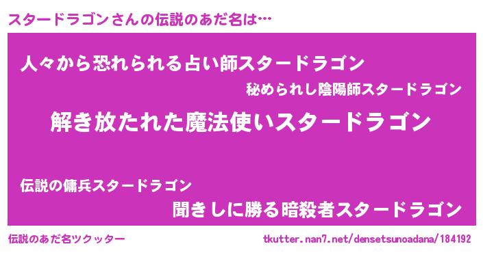 | 胡散臭い通販商品みたいなあだ名 | 『伝統あるサプリメント…その名も「スタードラゴン」』 |