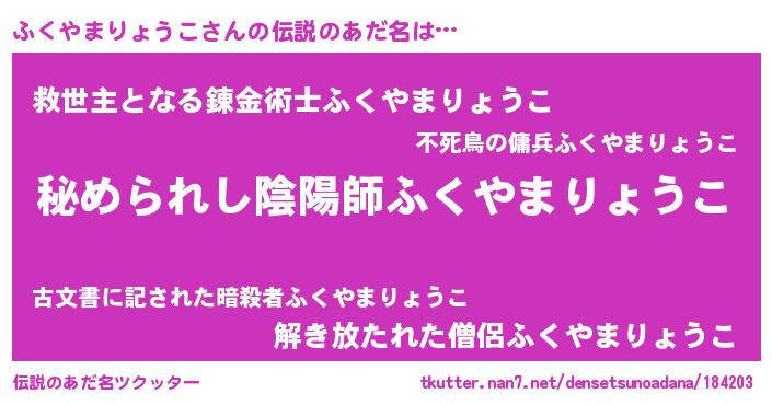 | 意味不明あだ名 | 『自称ふくやまりょうこ』 |